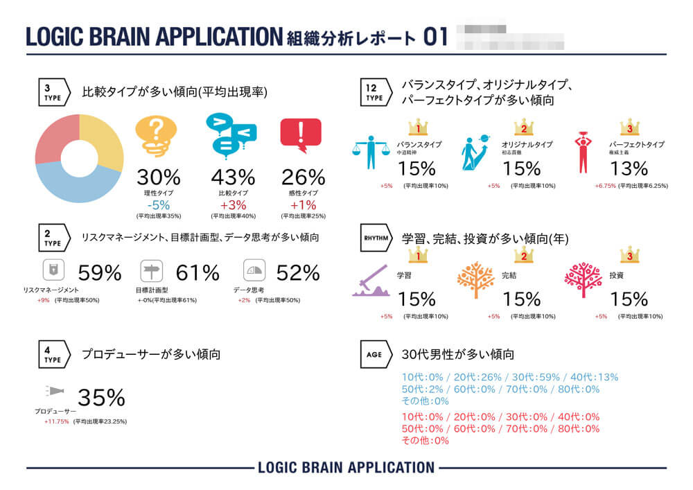 個人の分析に基づき、組織内の属性のバランスを把握